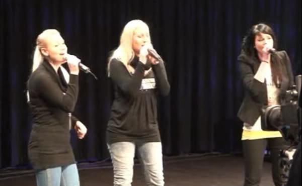 Ryhmässä lauloi kolme ennen ruudussa näkymätöntä naista: Jasmin Arffman, Niina Marin, Hennariikka Syvänne.