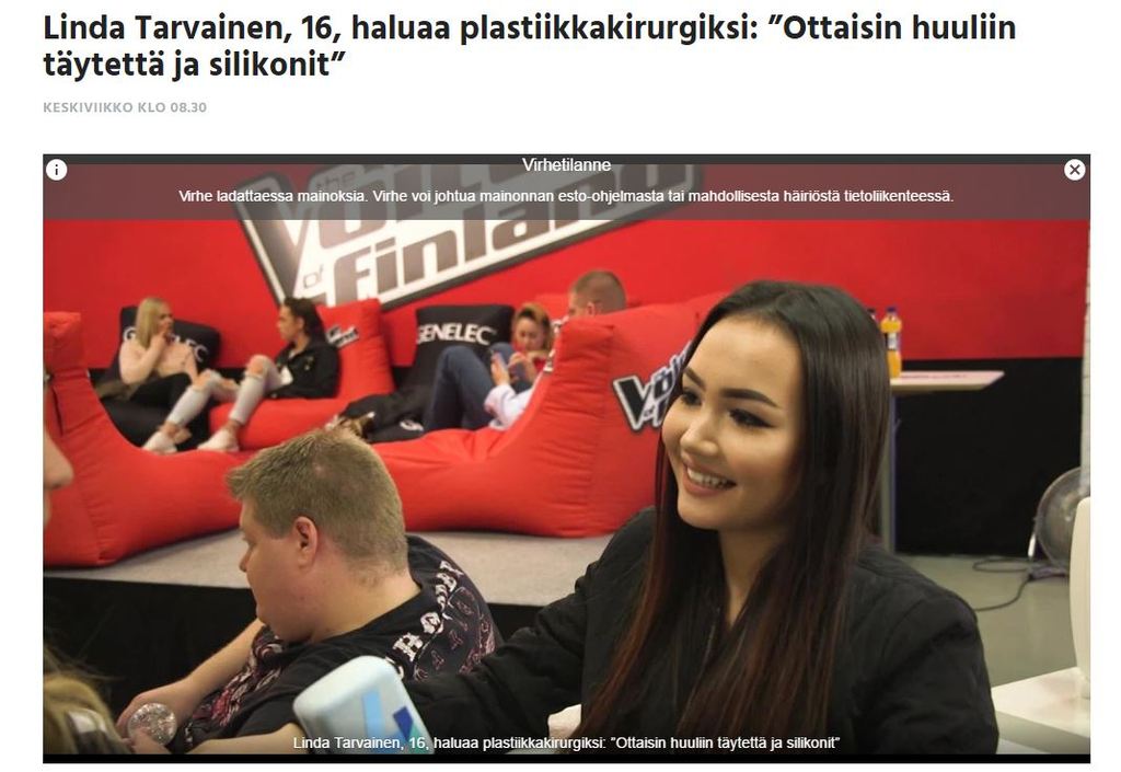 http://www.nelonen.fi/ohjelmat/the-voice-of-finland/2124710-linda-tarvainen-16-haluaa-plastiikkakirurgiksi-ottaisin-huuliin-taytetta-ja-silikonit