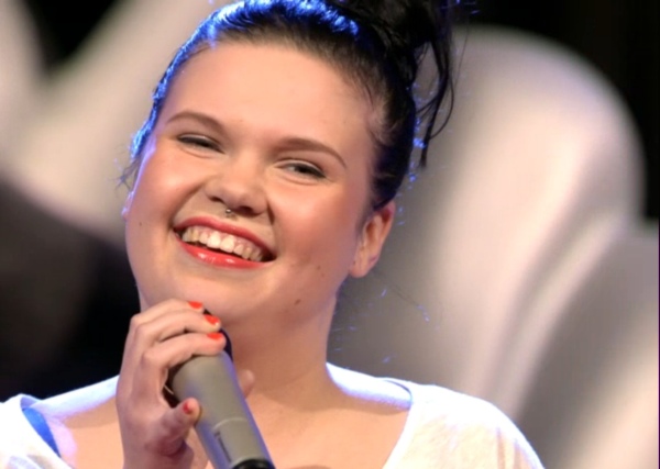 Lisäämässäni kuvassa Eve on juuri nähnyt, että ensimmäinen valmentaja kääntyy. Siitä iloinen ilme vaikka laulu jatkuukin edelleen.