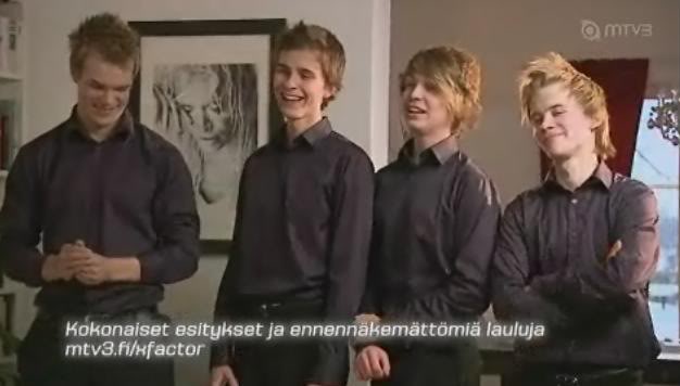 1. Vasemman puoleisin. (Lassi)2. Toinen vasemmalta. (Sami)3. Toinen oikealta (Rene)4. Oikean puoleisin. (Matias)Sori oli pakko Äänestän siis toista oikealta.